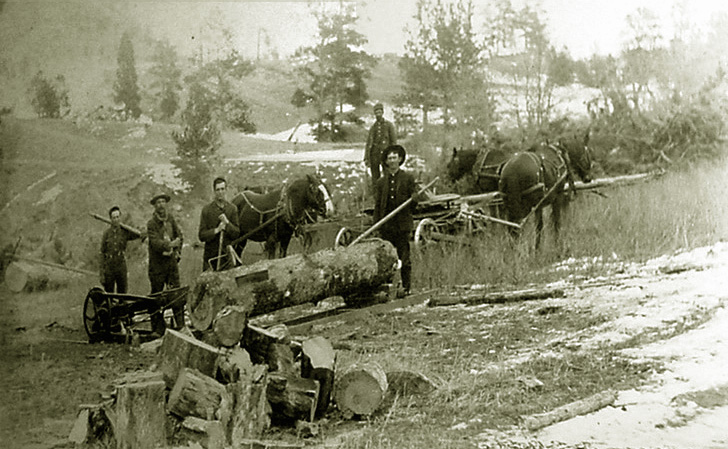 ![]() Logging near Hulett, approximately 1910. Following the discovery of gold near Deadwood, the Black Hills became a primary source of timber necessary for the gold mines. Because of transportation difficulties, most of the logging operations were on the Dakota side of the Black Hills. One of the areas in Wyoming where timbering took place was near Hulett on the Belle Fourche is the closest town to the Devils Tower.