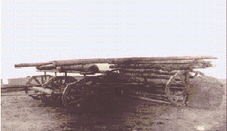 the ground. We tied the logs with our ropes to the rear end of the wagons