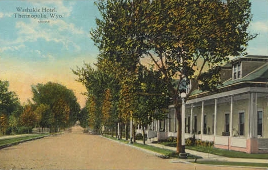 Washakie Hotel and Bathhouse, undated.  Thermopolis and falls, approx. 1910. Next Page Thermopolis continued. |