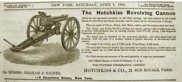 Advertisment for Hotchkiss Revolving Cannon,