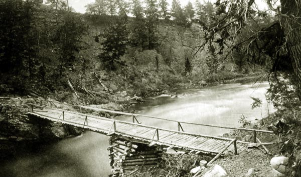 ![]() Baronette's Bridge after 1880. Baronette was one of those larger than life colorful adventurers that young boys dreamed of becoming when reading dime novels. He was born into an apparently titled family in Scotland. He ran away to sea and jumped ship to join the California Gold Rush. Thereafter, he prospected for gold in Africa, Australia, and Colorado. He served as second mate on a whaling ship. He acted as a courier for Albert Sidney Johnston during the Mormon War. With the outbreak of the Civil War he enlisted in Confederate Forces in Texas. Later Baronette served with the Emperor Maximilian before coming to Montana in 1866. Not withstanding that he was a former Confederate, he served as a guide for George A. Custer and Philip H. Sheridan. He joined the gold rush to Nome, but his vessel was lost. In 1901, Baronette disappeared while traveling from Washington State to California. Six weeks after Baronette's disappearance word came that a relative had been killed in the Boer War. If Baronette could be found, he had inherited the title.